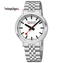 Die stop2go-Kollektion hat nicht nur das minimalistische und zeitlose Design der Schweizer Bahnhofsuhren geerbt, sondern verfügt auch über ein einzigartiges Uhrwerk, das dem dieser ikonischen Uhr ähnelt. Der markante, rote Sekundenzeiger der Armbanduhr macht in 58 Sekunden eine volle Umdrehung und wartet dann 2 Sekunden, wenn er die Stunde erreicht, damit der Minutenzeiger elegant auf die nächste Minute springen kann. Mit ihrer starken Verbindung zur Geschichte der Schweizer Bahnhofsuhr ist die stop2go eine echte Hommage an MONDAINE's Schweizer Herkunft und Design. Dieser außergewöhnliche Zeitmesser lädt dazu ein, ganz wie er selbst, die Zeit für einen Moment anzuhalten, in einer Welt, die nie stillzustehen scheint.